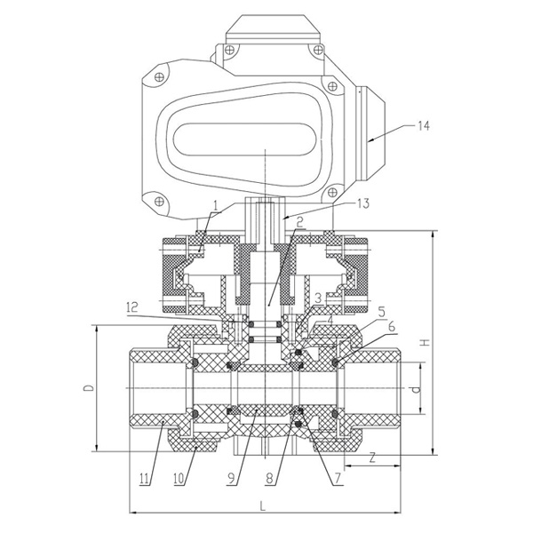 PVC-C D961F-10V Electric Double Union Ball Valve DN15-100 GB Standard
