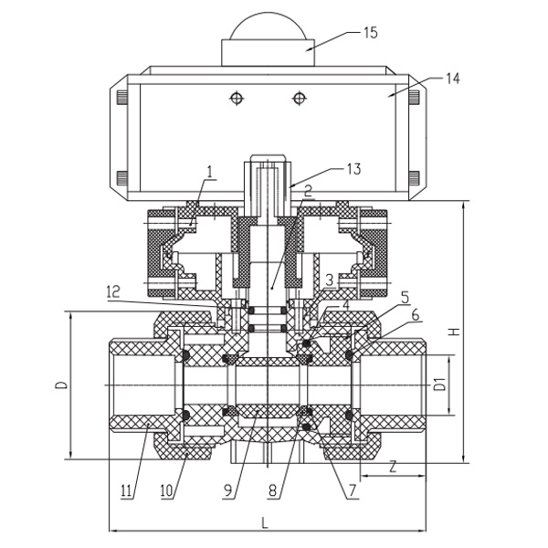 1. Injap bola plastik kejuruteraan ini diacukan suntikan dalam satu bahagian menggunakan termoplastik tahan kakisan seperti FRPP, PVDF, PVC-C, PVC-U dan PPH, menawarkan rintangan kakisan yang kuat.