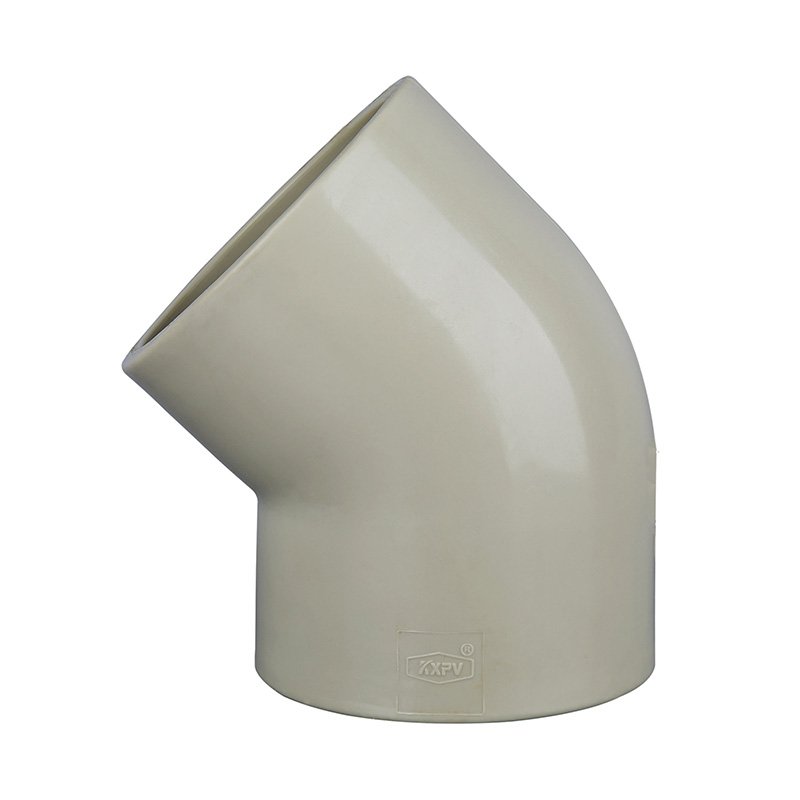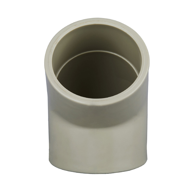 Soket Lebur Kuning Earthy yang sangat tahan lama 45° Siku Bentuk Sama Saiz Standard Profesional DN15-100 Kelengkapan Paip Plastik PPH 45° Siku
