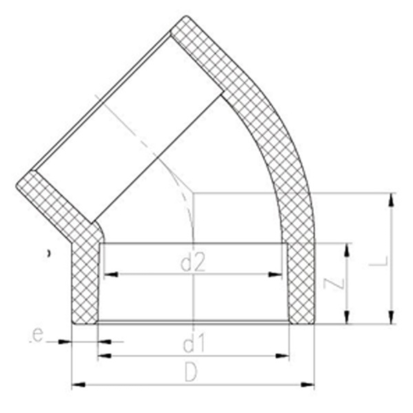PPH Hot Melt Socket 45° Elbow DN15-100 GB Standard
