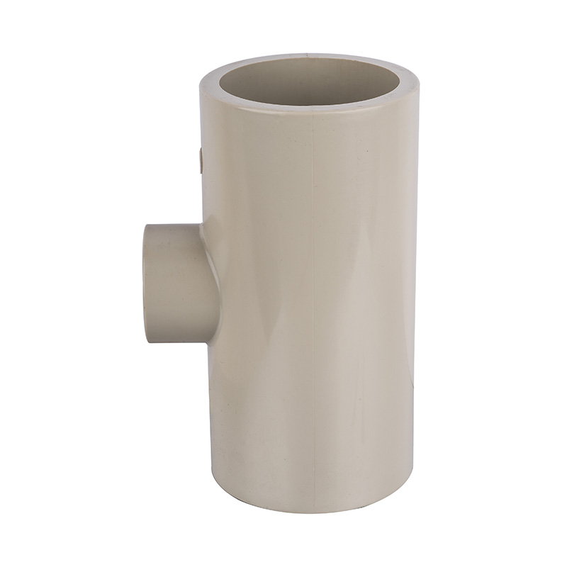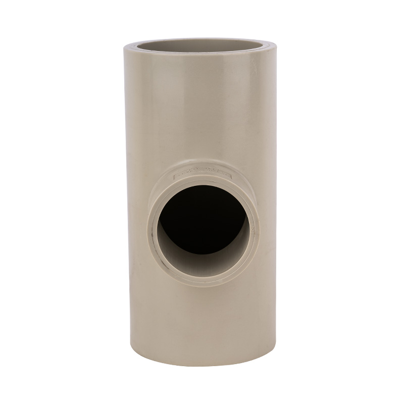 Kualiti tinggi Earthy Yellow PPH Reducing Tee Female Socket pemasangan paip plastik untuk kegunaan kimia dan udara