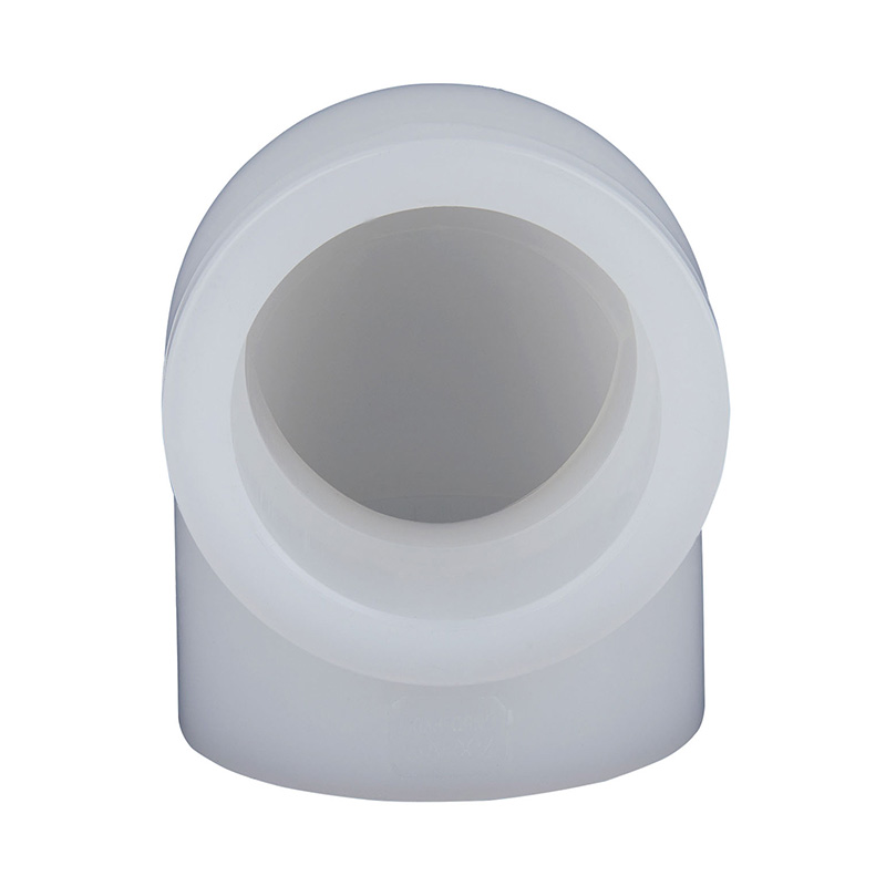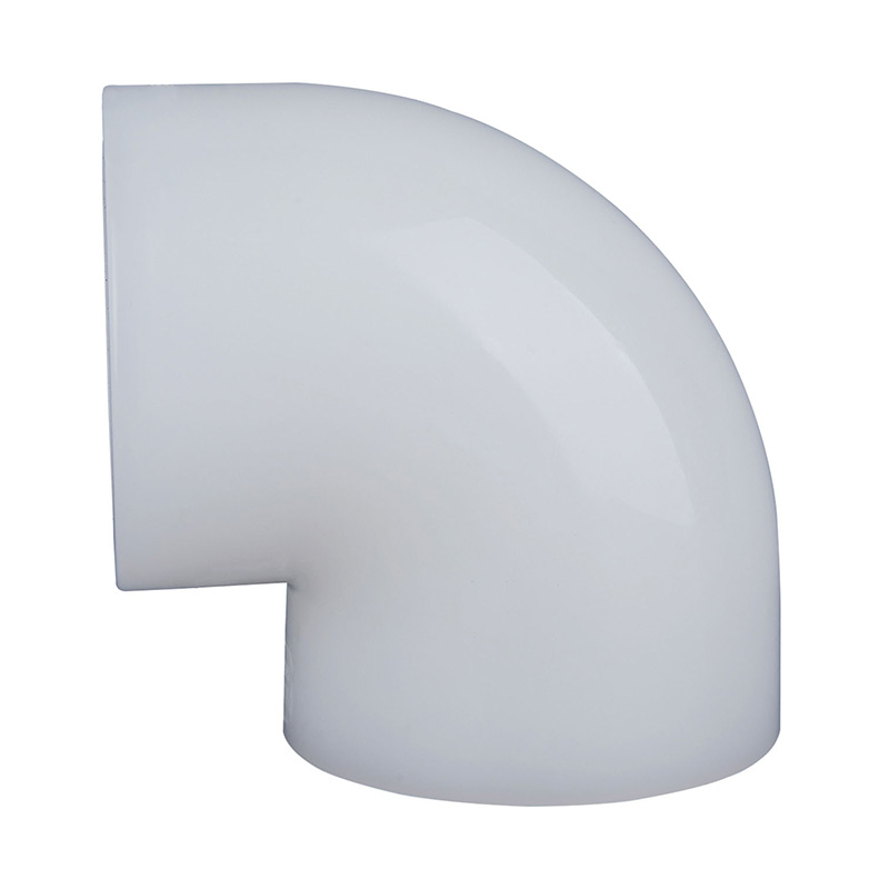 PVDF Putih Berkualiti Tinggi 90°Siku Bentuk sama DN15-DN100 1.0-1.6Mpa Pemasangan Paip Plastik Tekanan Kerja Untuk Industri Kimia Dan air