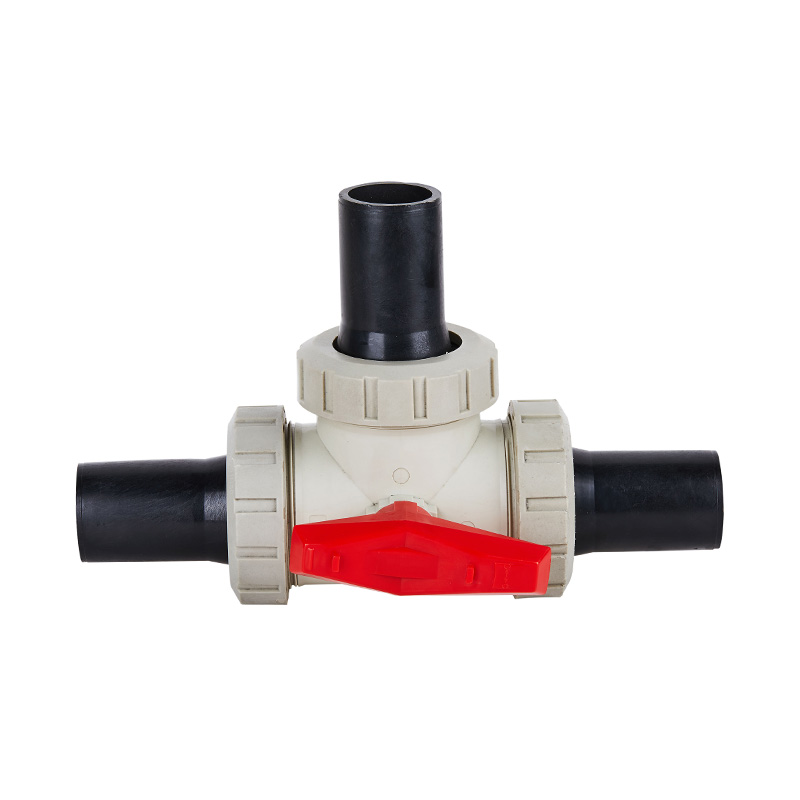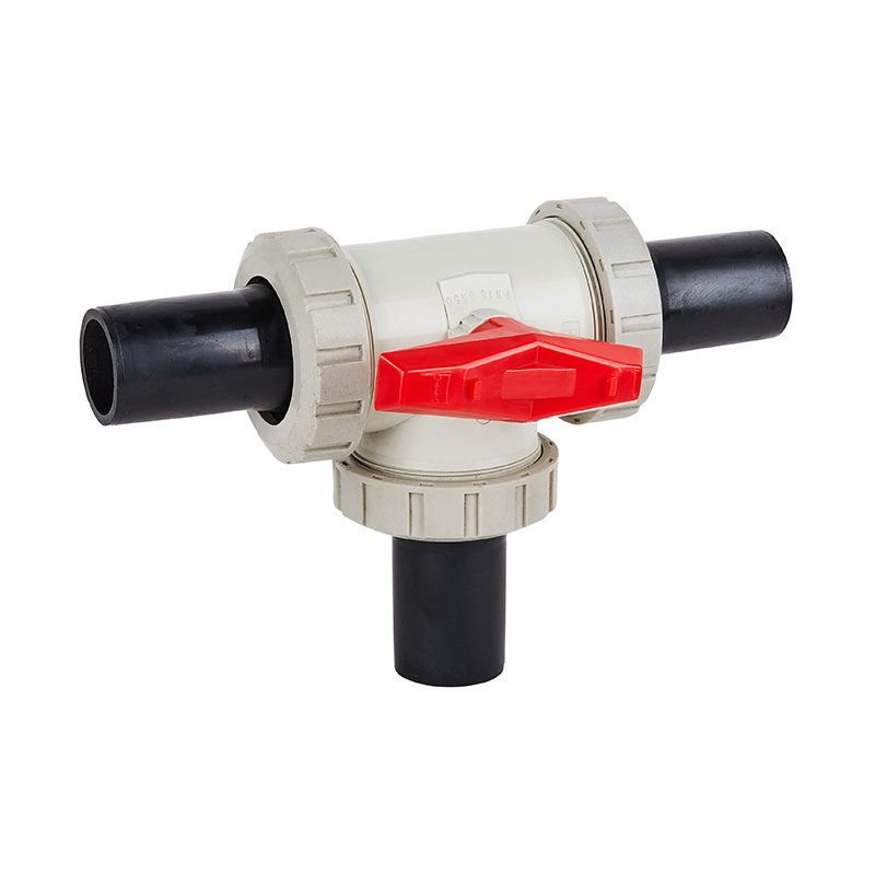 Injap Bola Soket Manual PPH Tee Prestasi Tinggi Suhu Tinggi DN15-DN100 Injap Plastik Perindustrian untuk Bekalan Air