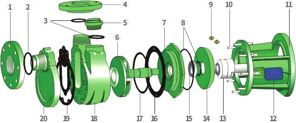 Kilang kami mengkhusus dalam pembuatan pam emparan dan penyebuan sendiri tahan kakisan plastik dalam dua bahan — PVDF dan FRPP — merentas empat siri (FV, FP, FVZ, FPZ). Pam PVDF sesuai untuk mengendalikan asid kuat, oksidan kuat, halogen, hidrokarbon aromatik, sebatian alifatik dan pelarut berklorin, dengan julat suhu operasi -40°C hingga 140°C. Pam FRPP sesuai untuk alkali kuat serta asid am, bes, garam, dan terbitannya, dengan julat suhu operasi -40°C hingga 90°C. Pam biasanya didorong oleh motor jenis Y yang cekap tenaga. Motor kalis letupan boleh disediakan atas permintaan.