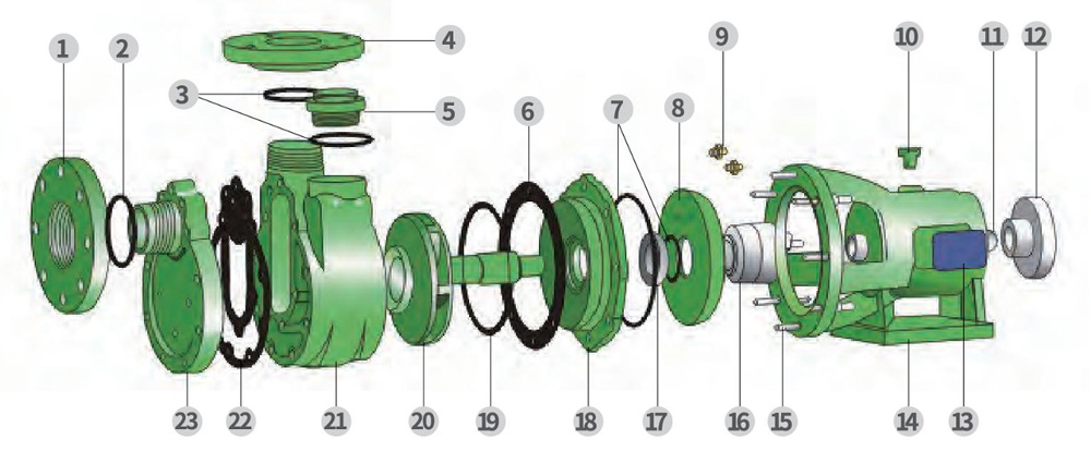 Kilang kami mengkhusus dalam pembuatan pam emparan dan penyebuan sendiri tahan kakisan plastik dalam dua bahan — PVDF dan FRPP — merentas empat siri (FV, FP, FVZ, FPZ). Pam PVDF sesuai untuk mengendalikan asid kuat, oksidan kuat, halogen, hidrokarbon aromatik, sebatian alifatik dan pelarut berklorin, dengan julat suhu operasi -40°C hingga 140°C. Pam FRPP sesuai untuk alkali kuat serta asid am, bes, garam, dan terbitannya, dengan julat suhu operasi -40°C hingga 90°C. Pam biasanya didorong oleh motor jenis Y yang cekap tenaga. Motor kalis letupan boleh disediakan atas permintaan.